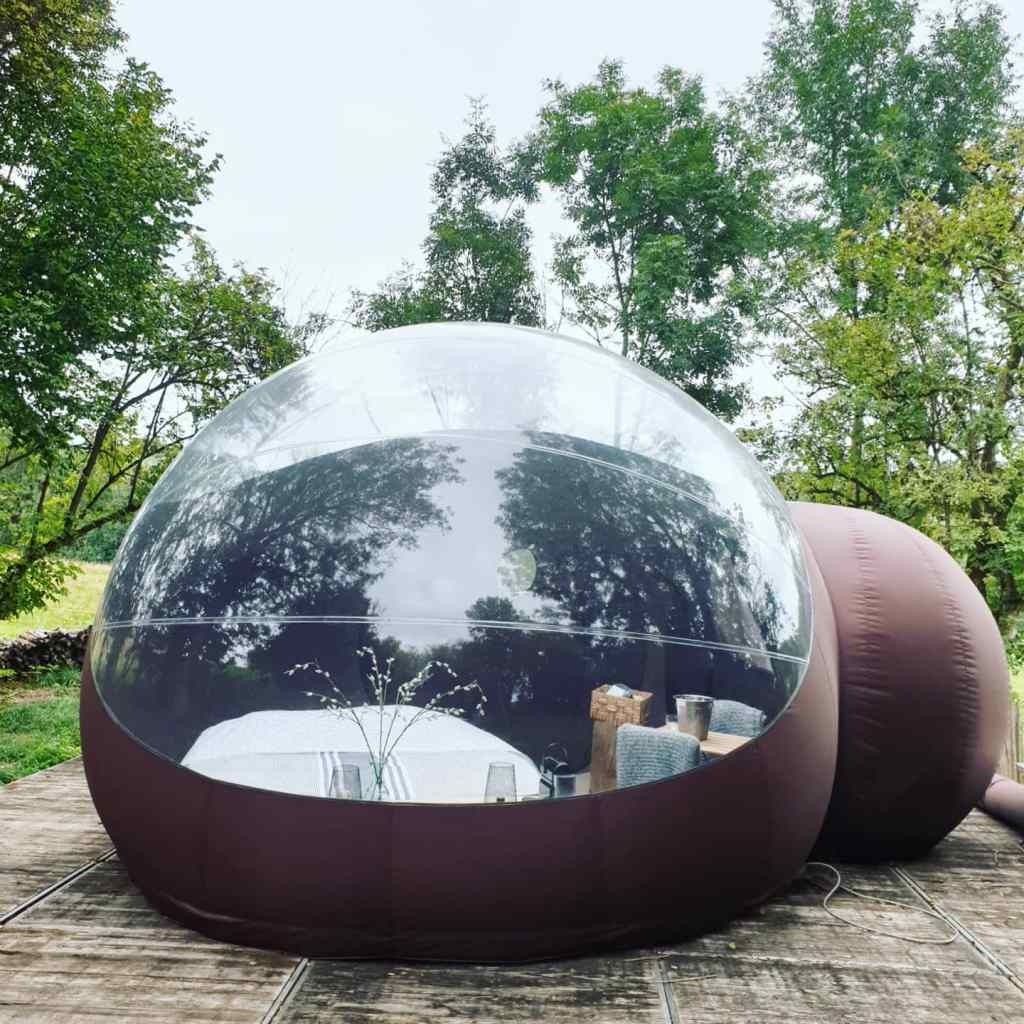 Na het avondeten in een gezellig restaurantje in Durbuy vertrokken wa naar La Ferme du Ry, onze slaapplaats. Het is een boerderij gelegen vlakbij Dinant met wel iets heel unieks, naar mijn mening toe. Daar kan je overnachten in een bubbel! De boerderij heeft maar 1 bubbel maar dat maakt het net zo leuk vind ik, er is geen drukte van andere mensen. Je bent hier met 2 om te genieten van de natuur. Met opklaringen kan je ’s nachts naar de sterrenhemel kijken. Wij hadden spijtig genoeg heel de avond en nacht bewolking. Maar het blijft genieten!
