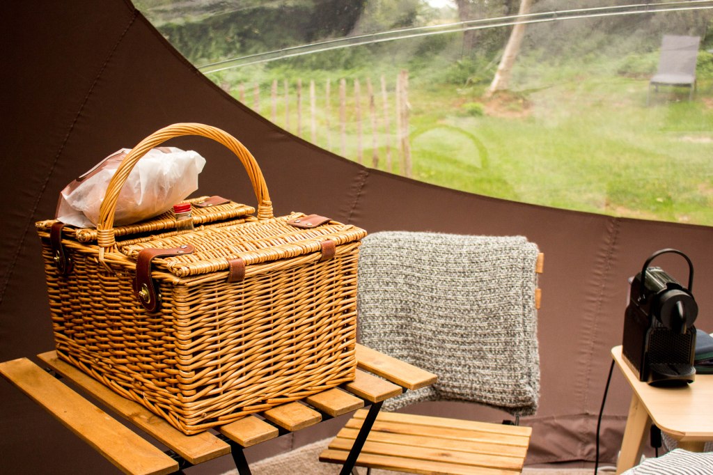 Wat heeft de bubbel te bieden? Binnenin staat een groot bed met warme dekens en een tafeltje met stoelen. Als verwelkoming kregen we een streekbiertje en er staat een mandje met koffie en theezakjes ter beschikking. De bubbel heeft ook een eigen wc met wastafel. De wc bevindt zich in een kleine zijruimte van de bubbel en kan je afsluiten met een rits (zoals een tent). Douchen is niet mogelijk. Maar voor 1 nacht was dit absoluut voldoende en verzorgd.