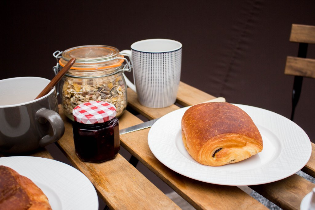 Je krijgt daar de mogelijkheid om ’s avonds iets te gaan eten of eten te bestellen. Bij de reservering moet je aangegeven of je in de ochtend een ontbijt wilt of niet. Wij kozen voor die optie. Die ochtend staat dan een ontbijtmand voor deur die je gezellig binnen of buiten op je terras kan opeten. Het ontbijt is vrij simpel maar voldoende. Je krijgt zelfgemaakte confituur en appelsap. Verder krijg je koffiekoeken, een baget, honing, smeerkaas, fruit, yoghurt en muesli. Zo hebben we het lekker gezellig gemaakt š