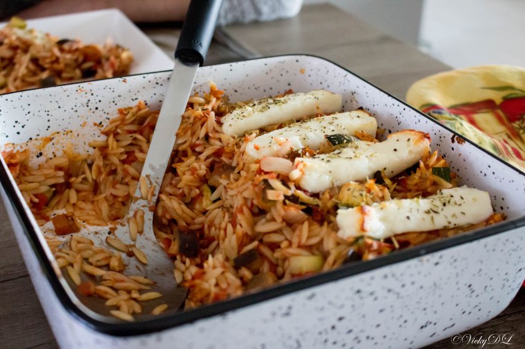7) Orzo met aubergine, courgette en halloumi uit deĀ oven