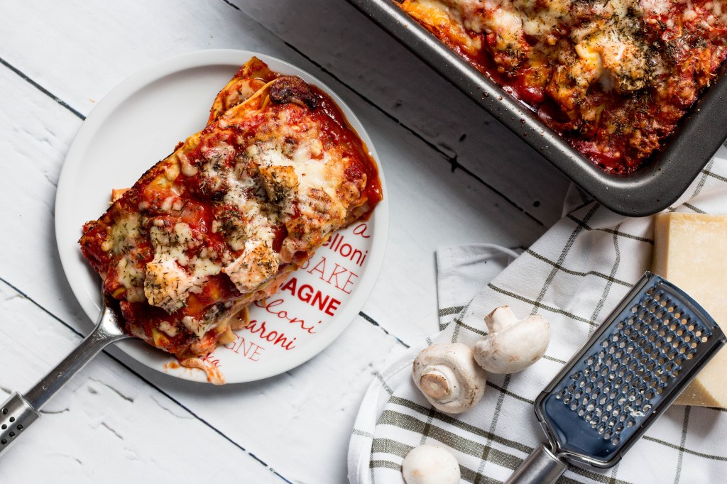 Zelf lasagne maken is zoveel leuker en lekkerder! Het lijkt veel werk maar is het eigenlijk niet 😉 Het resultaat mag er zeker zijn! Zoveel beter dan uit een ‘pakje’ van de winkel. Deze lasagne met zalm en champignons staat na een half uur werk (waarvan 20 minuten oventijd) op je bord!