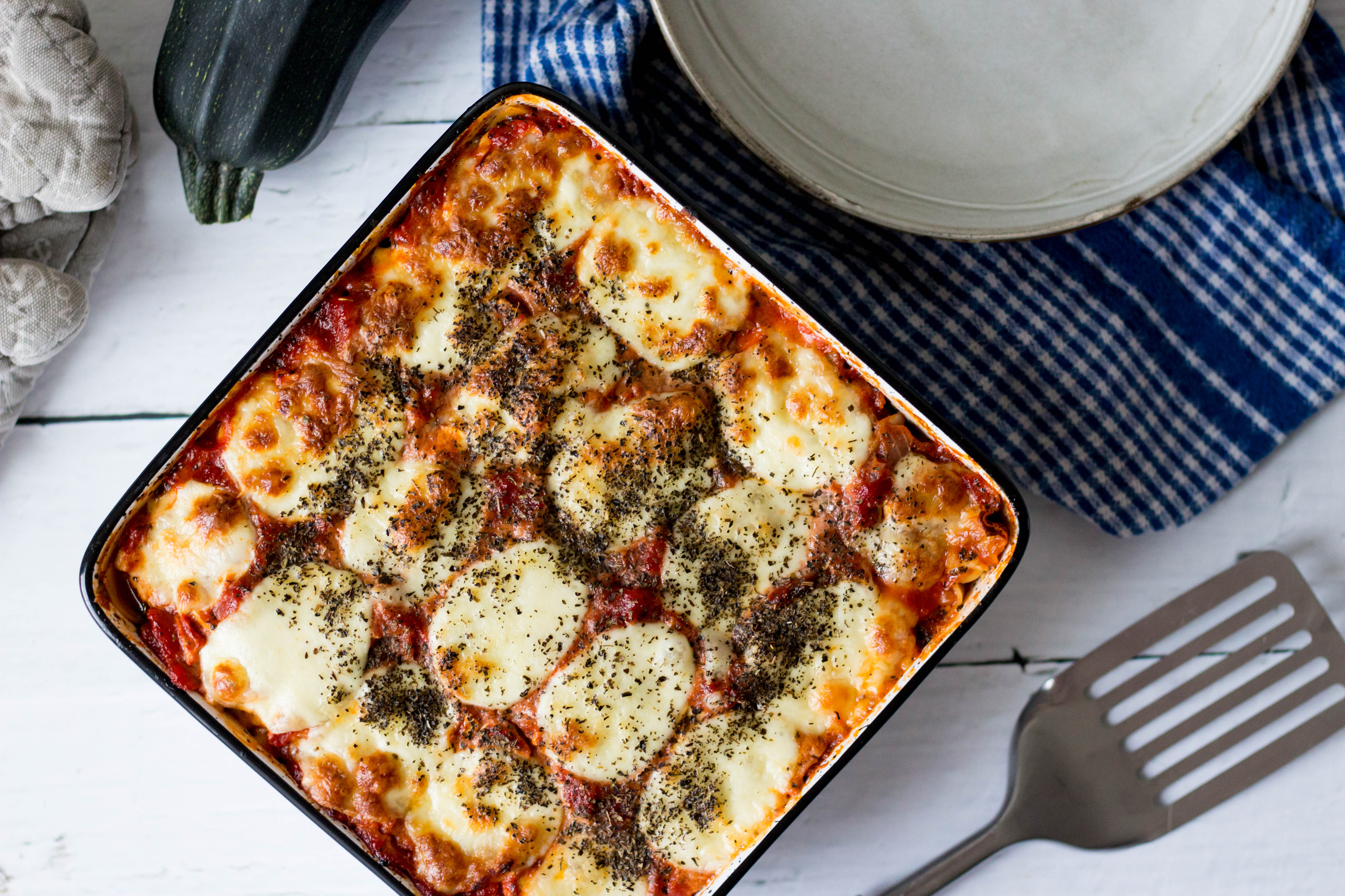 Lasagne met courgette, champignons en mozzarella