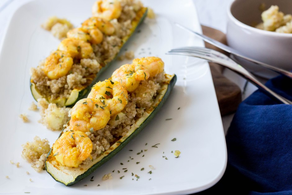 Courgettebootjes met quinoa en scampi’s