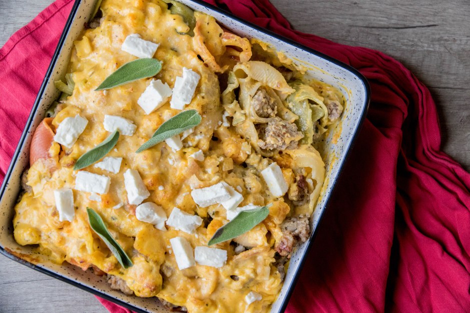 We zitten volop in het pompoenseizoen! Je kan er zoveel verschillende gerechten mee uit. Zoals deze ovenschotel (die je vast heel lekker zal vinden!) van grote pastaschelpen, opgevuld met gehakt, met een romige pompoensaus en feta. Heerlijk!