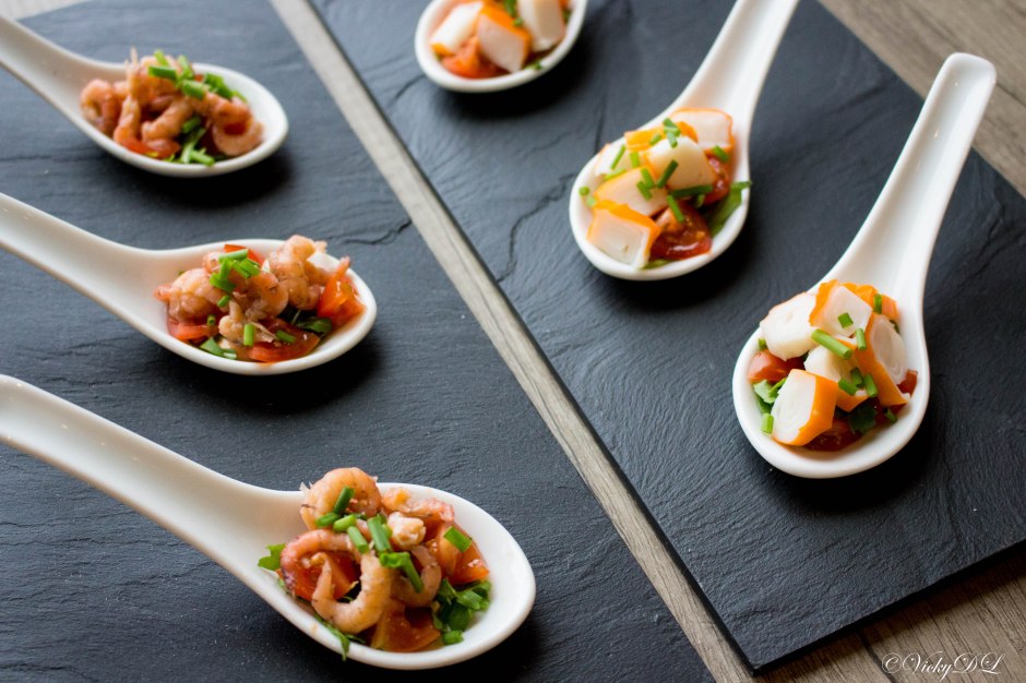 Geef je binnenkort een diner maar weet je nog niet welk hapje je gaat klaarmaken? Wat dacht je van deze lepelhapjes van garnalen en surimi? Je hebt er weinig werk aan en het scoort altijd bij je gasten!